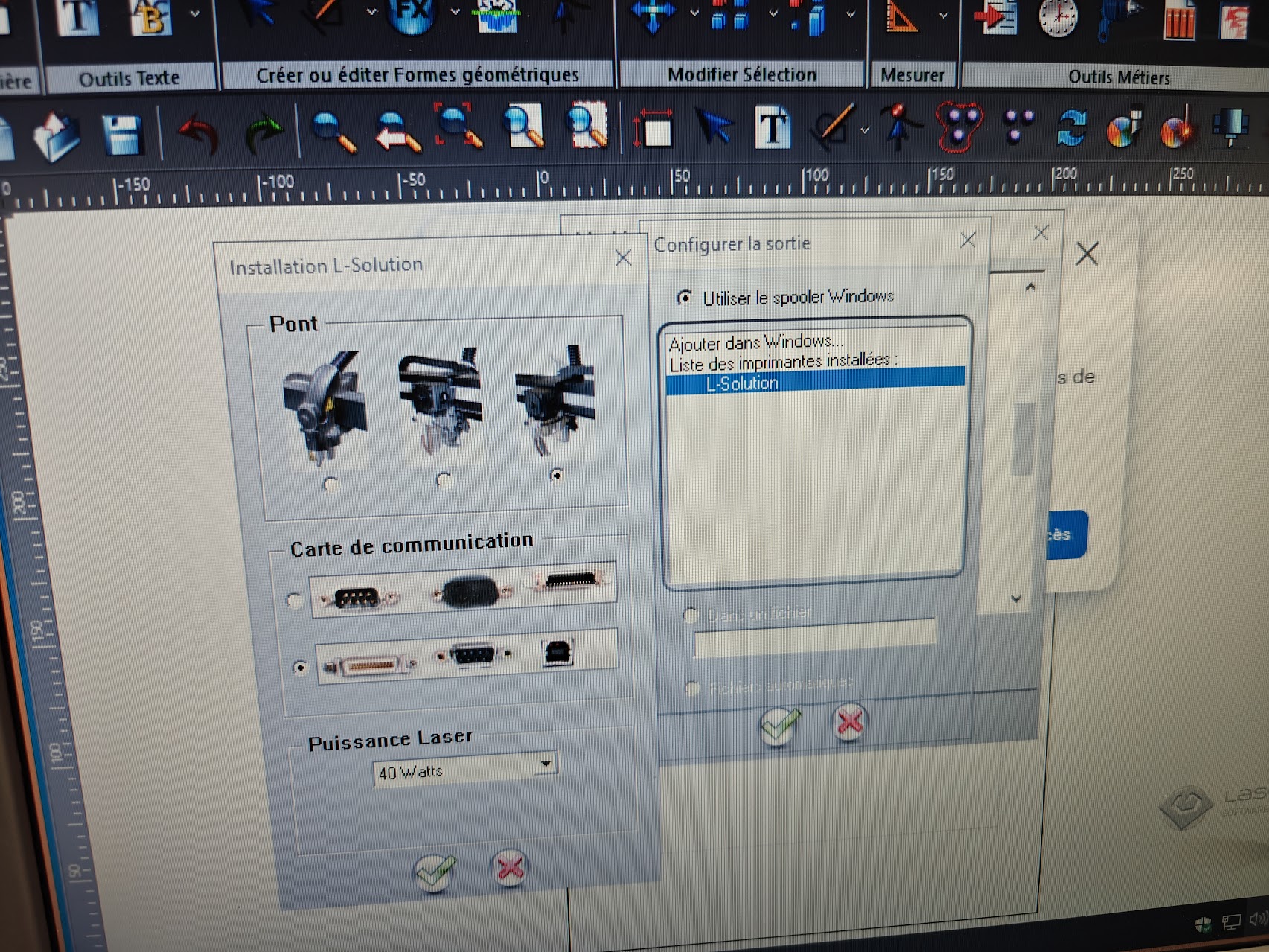 Installation d'un graveur laser, configuration des logiciels et des pilotes.